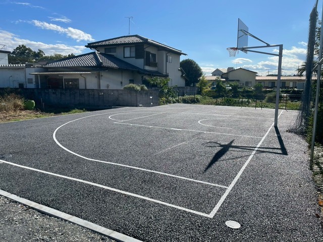 お庭にバスケットコートを作りました。