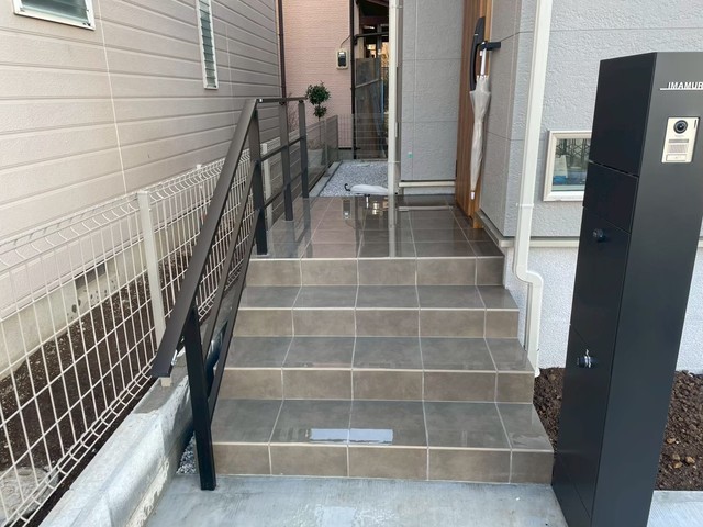 玄関前アプローチ、門柱、インターホン、電気、施工工事です。