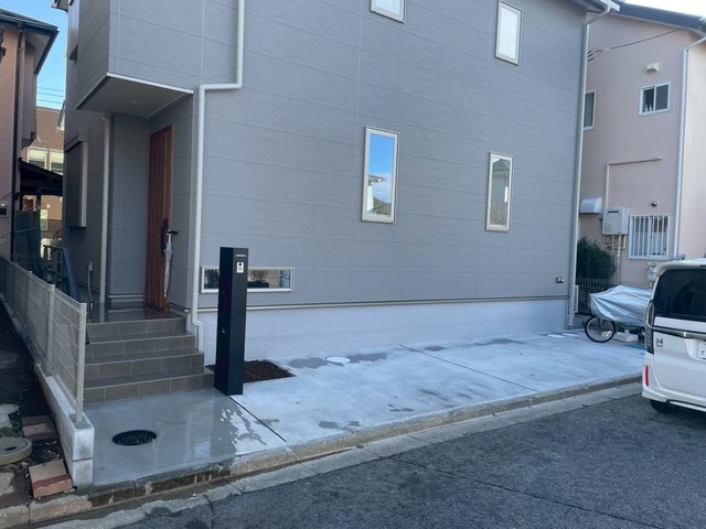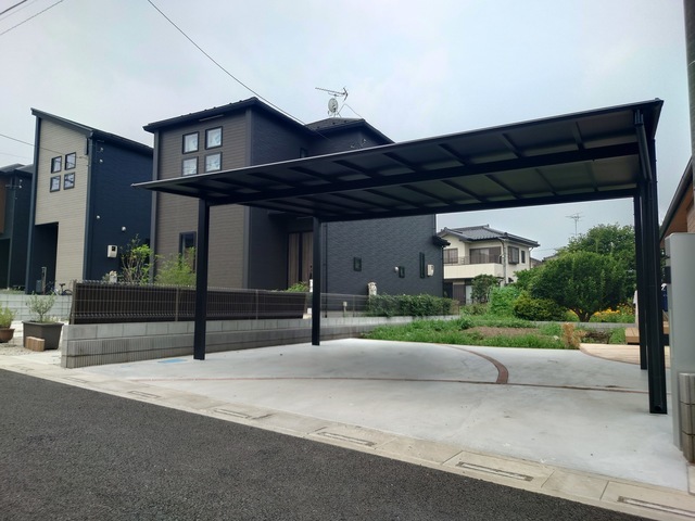 カーポート、土間コンクリート、機能門柱等の工事を行いました。
