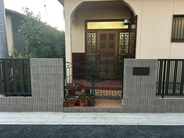 ブロック門柱、玄関前アプローチです。