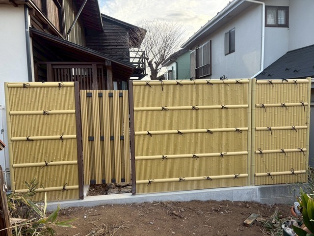 目隠しに人工竹フェンスを採用景観が素晴らしく心落ち着く雰囲気を醸し出しております。