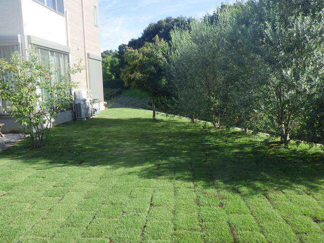 整地してから新たに土をいれその上に天然の芝を敷き、目土と肥料をいれて完成です。