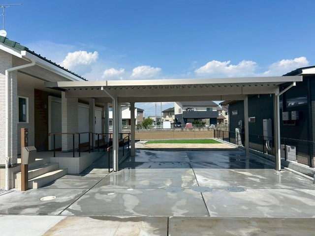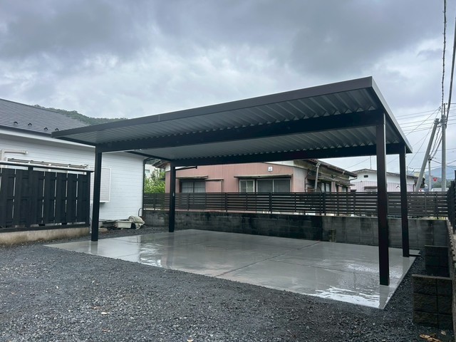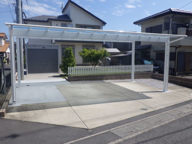 三協アルミのG1-R2台用間口延長カーポート設置と土間コンクリートを打設致しました。